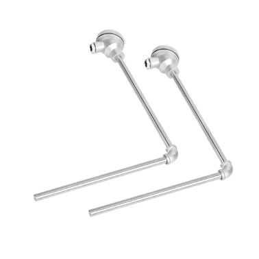 直角热电偶是一种特殊结构的温度传感器,直角弯头热电偶适用于生产现场存在高温和有害气体对热电偶接线盒有影响,或不宜直接水平及垂直安装场合,主要用于高温、空间受限或安装方向受限的工业测温场景。它通过在测温端形成90度弯角,实现对狭小空间、管道拐角、熔融金属(如铝液)等难以直插测量位置的精准控温.
